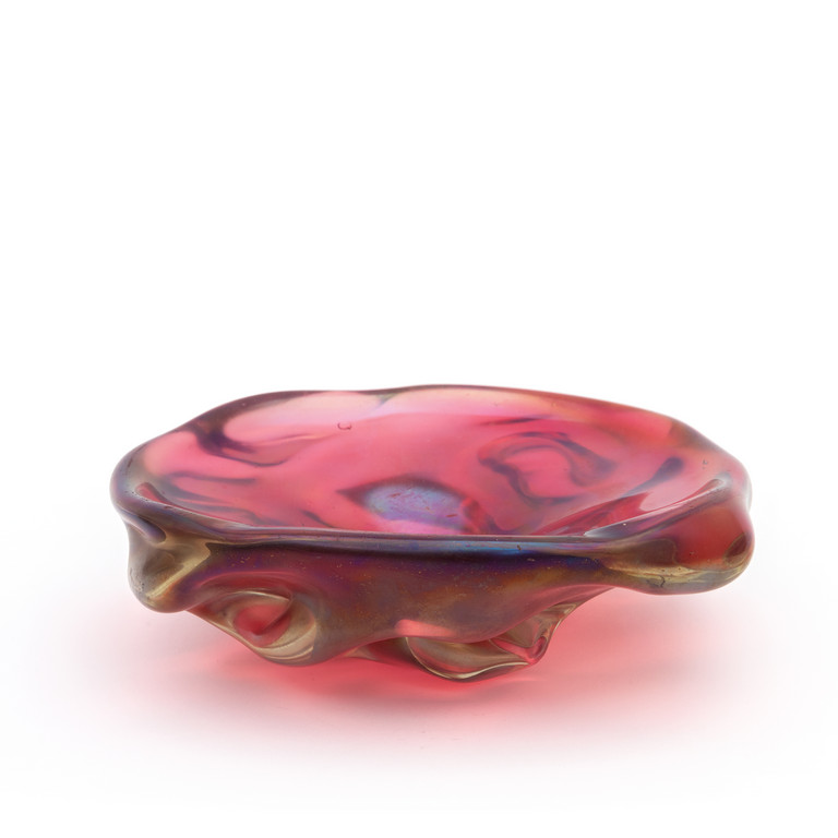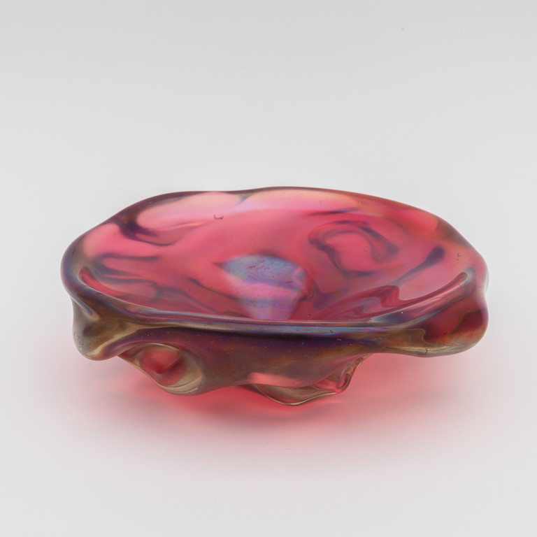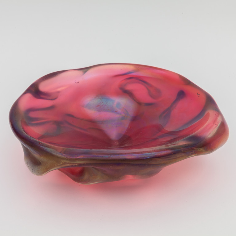 Una coppa in vetro sommerso rubino iridato circa 1935.