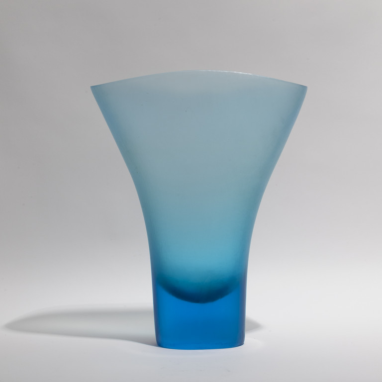 Un grande vaso in vetro battuto acquamarina a sezione schiacciata e base piena modello '8515' circa 1965.