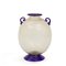 Un vaso biansato in vetro trasparente ambra con piede anse e bordo collo in vetro blu circa 1925.