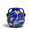 Un vaso bi-ansato in vetro blu e murrine floreali disposte irregolarmente.