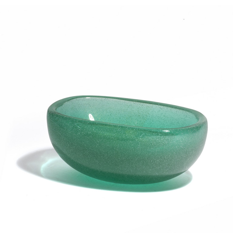 Una coppa in vetro sommerso a bollicine e foglia oro circa 1935.