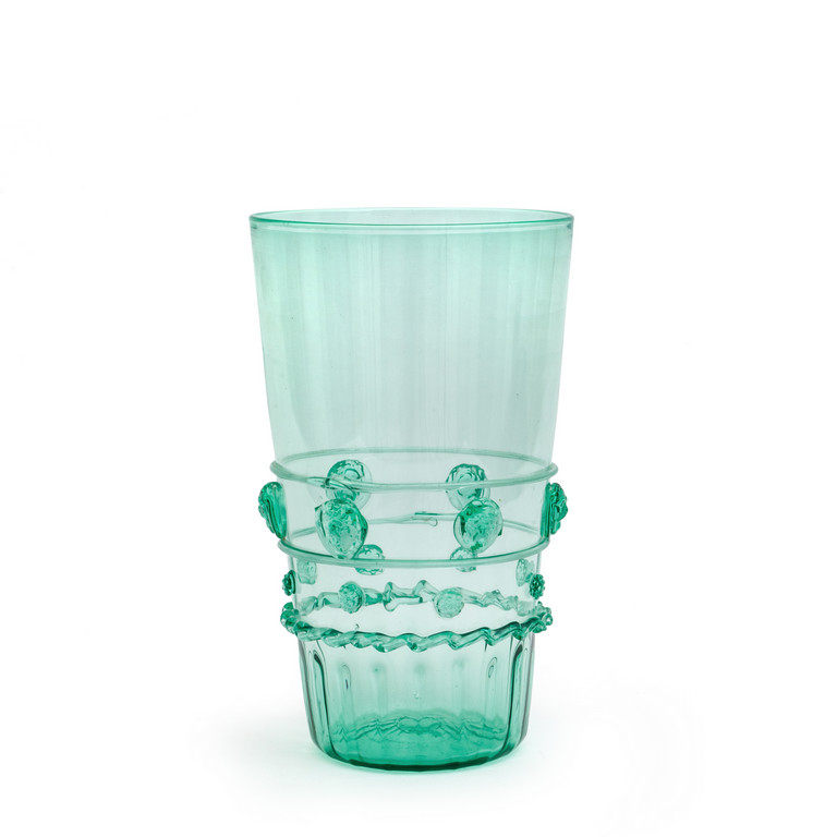 Un vaso in vetro trasparente verdino