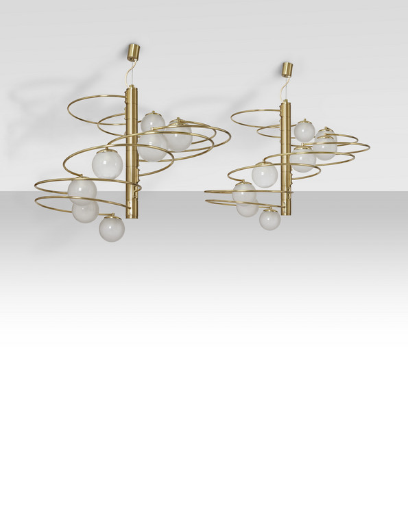 A pair of hanging lamps manufacured by LUMI Milan 1960's.