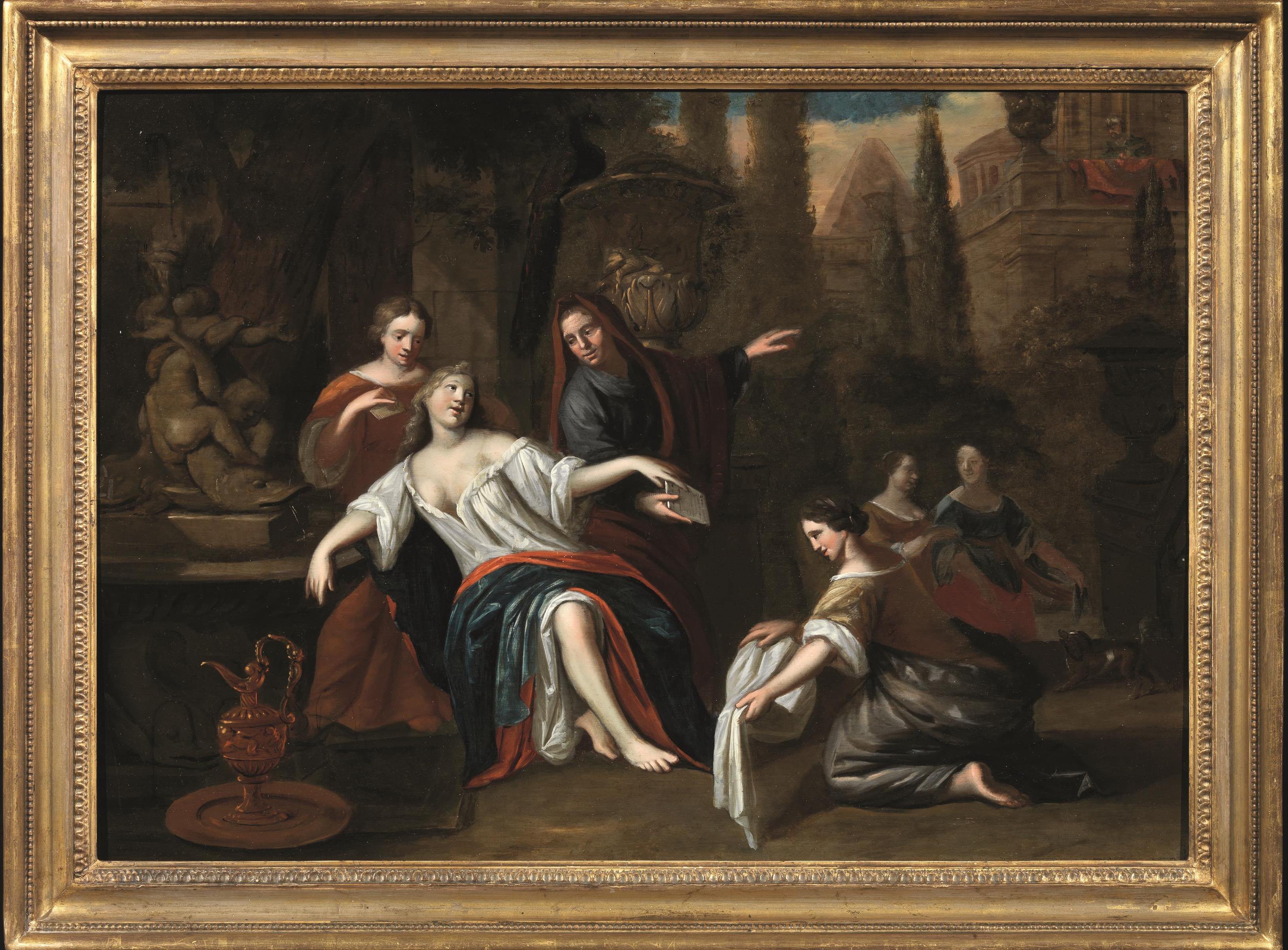 Lotto 198 | Scuola fiamminga, fine sec. XVII-inizi XVIIISUSANNA E LE SUE ANCELLEolio su...