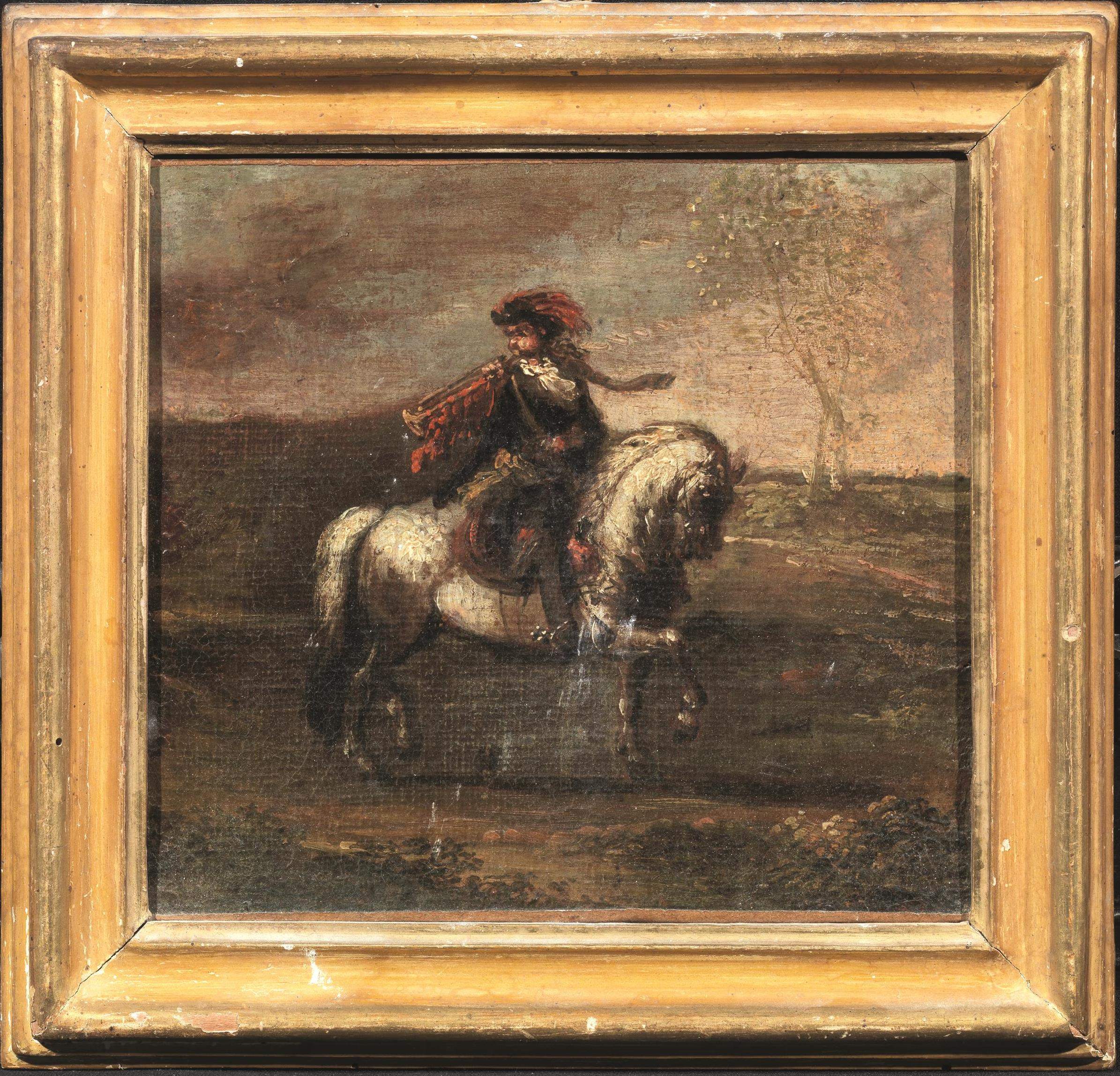 Scuola napoletana, sec. XVIIICAVALIERI IN UN PAESAGGIOcoppia di dipinti ad...