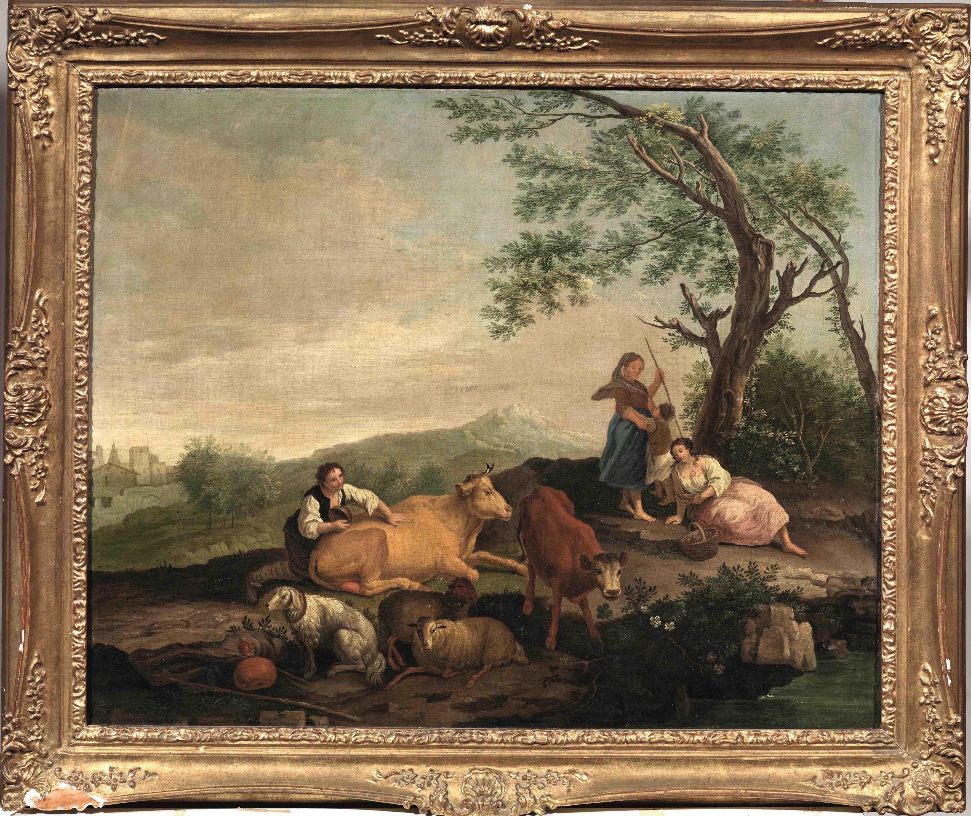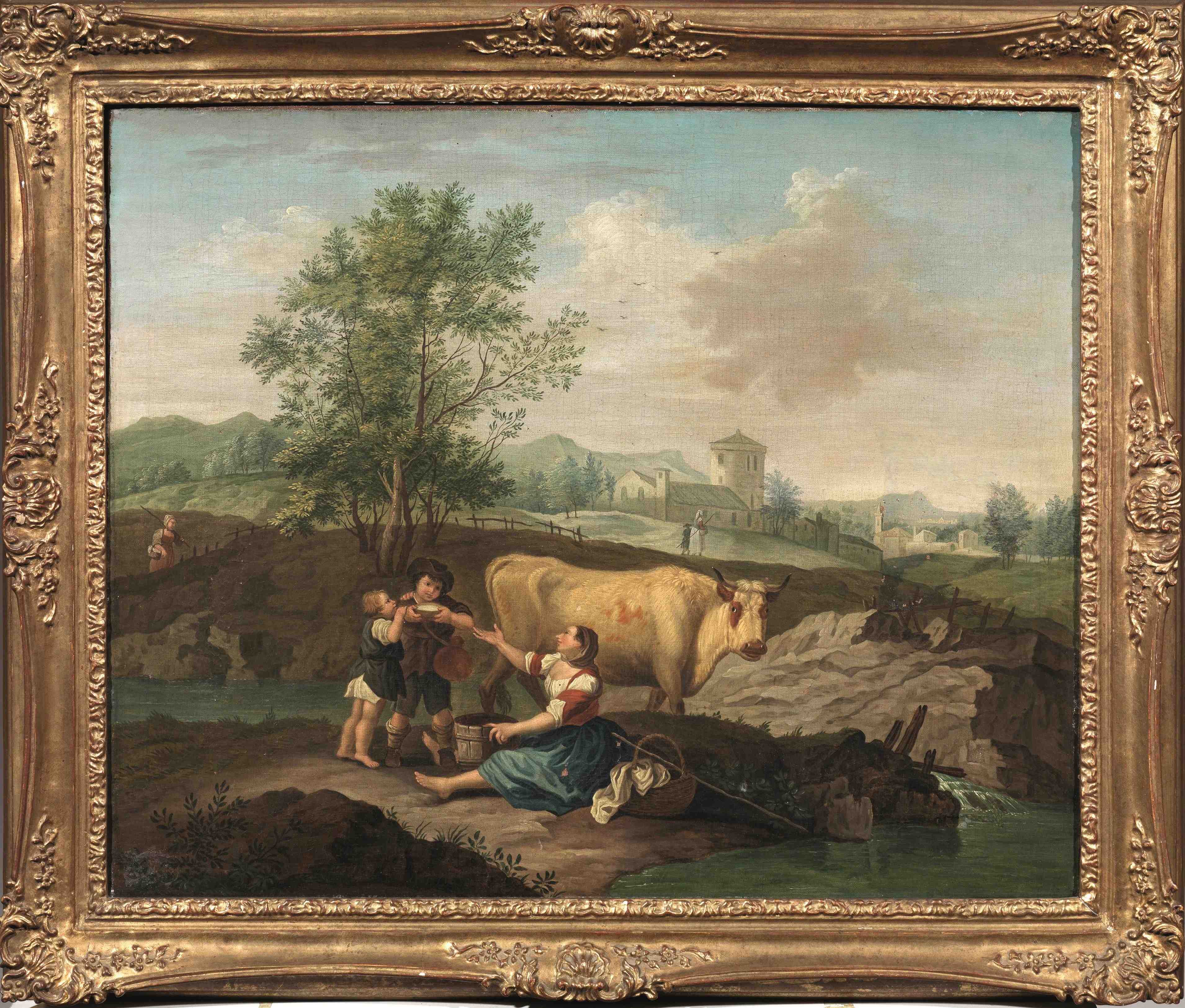 PAESAGGIO CAMPESTRE CON PASTORELLA E GIOVANETTI