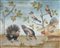 Landscape with rooster, turkeys and birds
