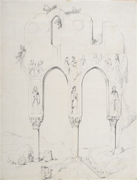 Otto disegni a matita, di cui uno con tocchi di penna e inchiostro nero, su carta controfondata, mm 289x220 (il più grande); mm 157x136 (il più piccolo)