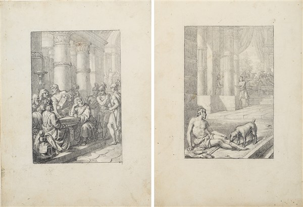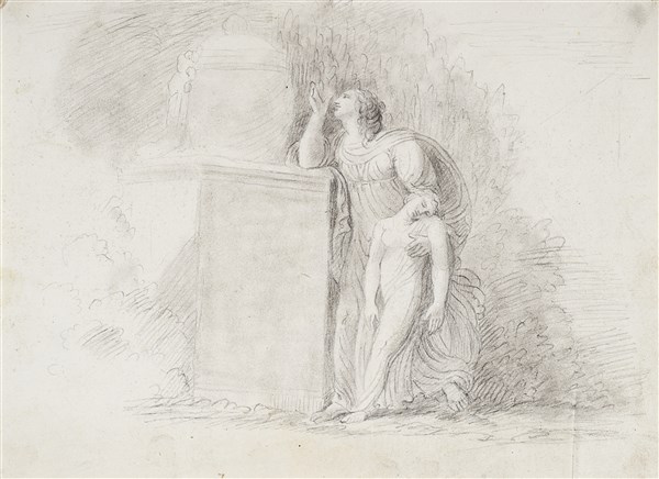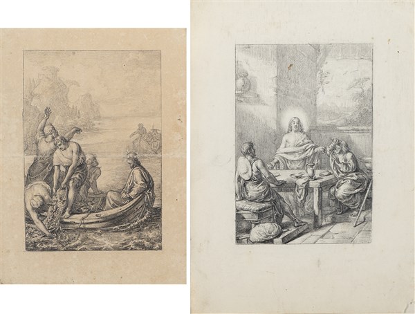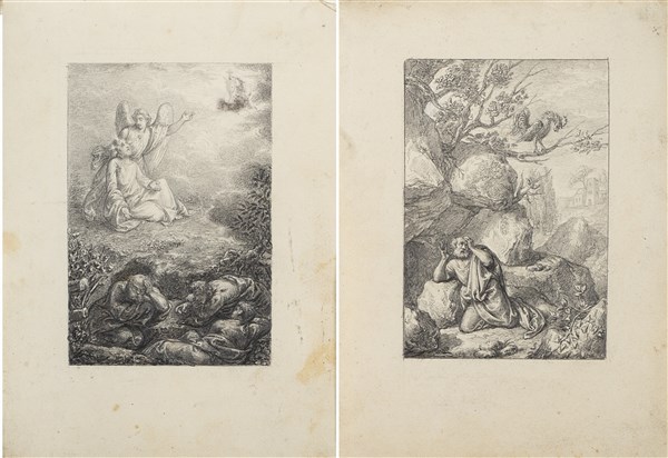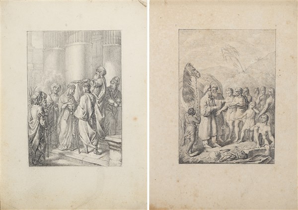 18th century volume containing eighty drawings of the 19th century of different sizes and subjects, mainly religious (30.5x23 cm. the volume) (defects)