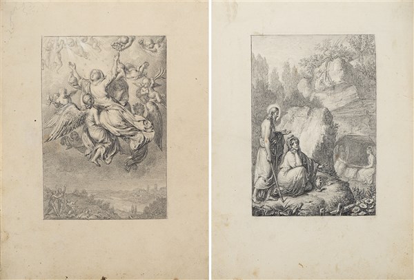 Volume del secolo XVIII contenente ottanta disegni del secolo XIX di misure e soggetti diversi, prevalentemente religiosi (cm 30,5x23 il volume) (difetti)