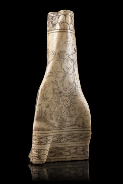 A powder fllask body made of bone, missing the bottom and the spout. Southern Germany, probaly Munich school, early 19th century (defects)