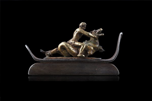 Acciarino decorato da statuetta in bronzo dorato raffigurante "Ercole e l'Idra"