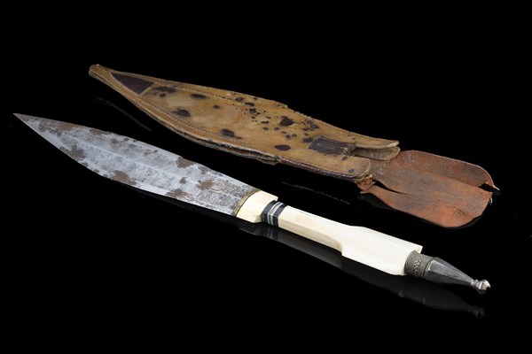 Pugnale "Billao" con manico in osso e bottone di codolo a guisa di minareto, la
