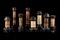 Collezione di otto contenitori, probabilmente porta unguenti, polveri o spezie,