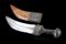 Jambiya arabo-yemenita con impugnatura in legno rivestito in lamina d'argento e