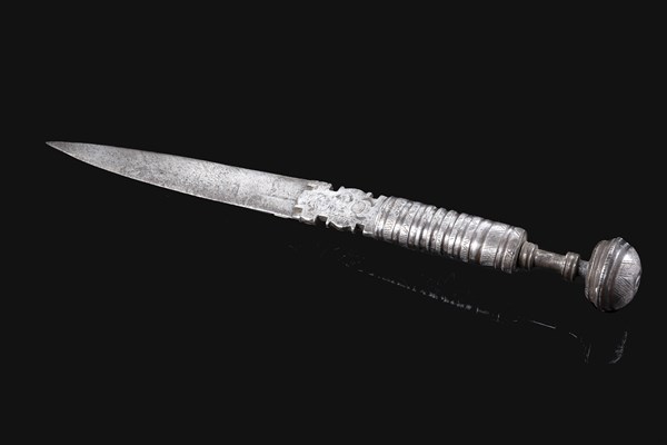Pugnale di probabile origine etiope. Bottone di codolo e impugnatura in metallo
