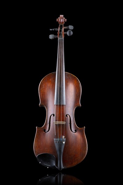One-piece back without curl, varnish of a red-brown colour, in perfect condition, with a fragment of an illegible label (lenght of the back mm 362) With case, a violin bow and a restoration's receipt by Enrico Ventura dated 1955