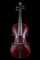 Fondo in due pezzi con marezzatura stretta discendente dalla giunta, vernice di colore rosso violaceo, in perfette condizioni, senza etichetta (lunghezza del fondo mm 390). Con custodia ed un arco da viola
