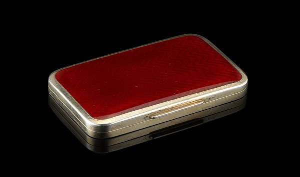 Portasigarette in vermeille con coperchio con smalti guillochè. Titolo 925, Fir