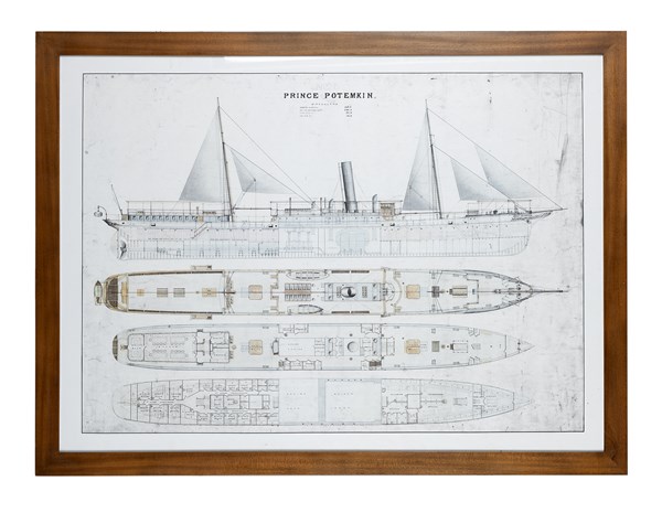 Lotto composto da due litografie nautiche a colori, raffiguranti rispettivamente le fregate SS Phidias e Prince Potemkin (cm 83x60; cm 88x49) In cornice
