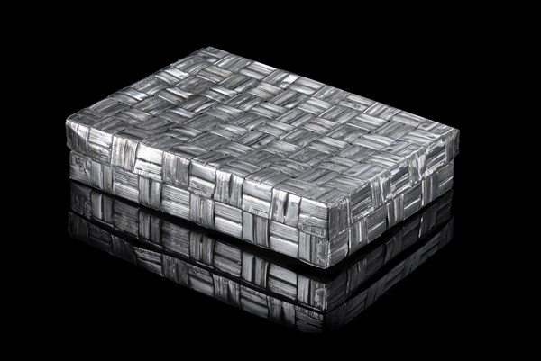 Scatola con coperchio in argento a finto vimini. Titolo 800. Argentiere VP (cm