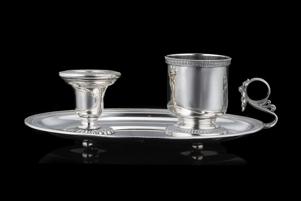 Bugia in argento decorato a palmette sul bordo. Titolo 800. Alessandria, argent