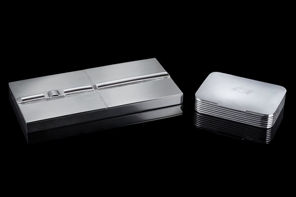 Lotto composto da una scatola in argento marcata CR e un porta sigarette bipart