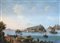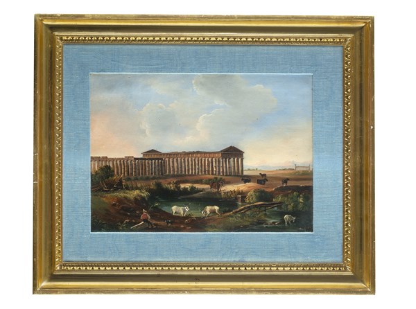 Scuola di Posillipo, secolo XIX "Tempio di Paestum" e "Isola di Procida" coppia di dipinti ad olio su tela (cm 27x39) In cornici (lievi difetti)