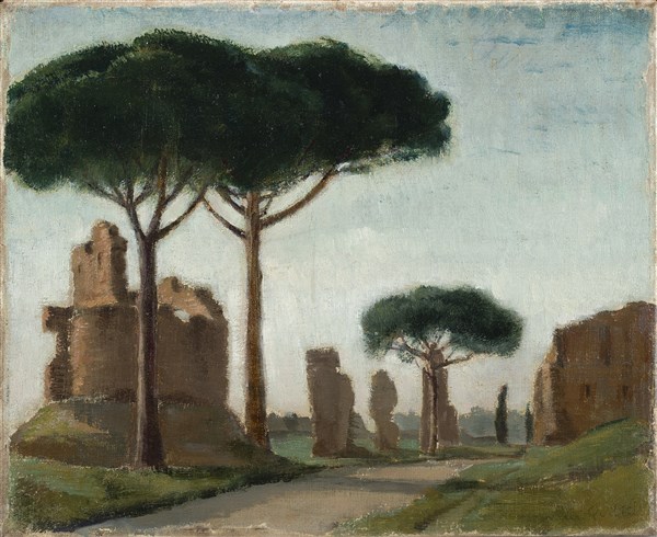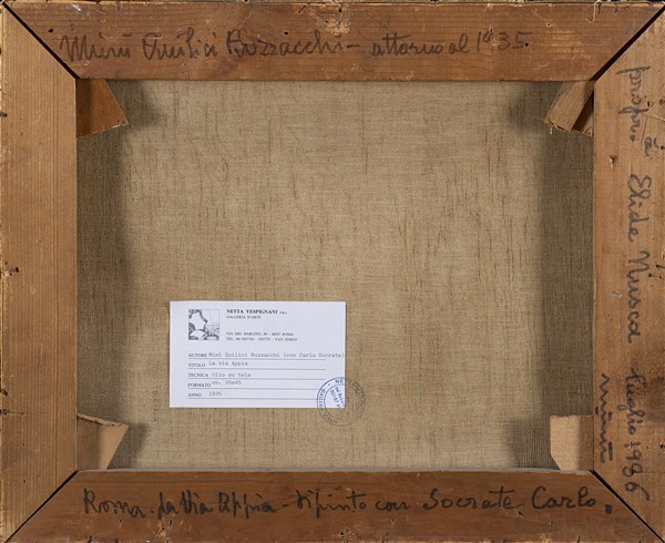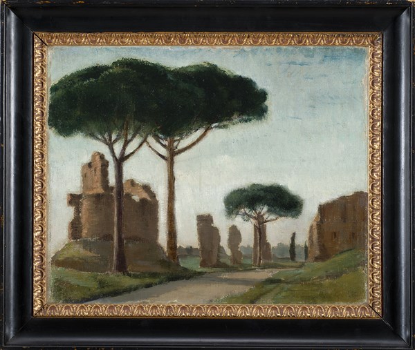 Carlo Socrate and Mimì Quilici Buzzacchi "La via Appia" 1935, oil on canvas. Signed lower right and inscribed on the reverse (35x43 cm). Framed (minor defects)