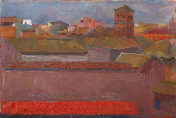 Mario Mafai "Tetti da San Michele" 1957 olio su tela. Firmato e datato in basso