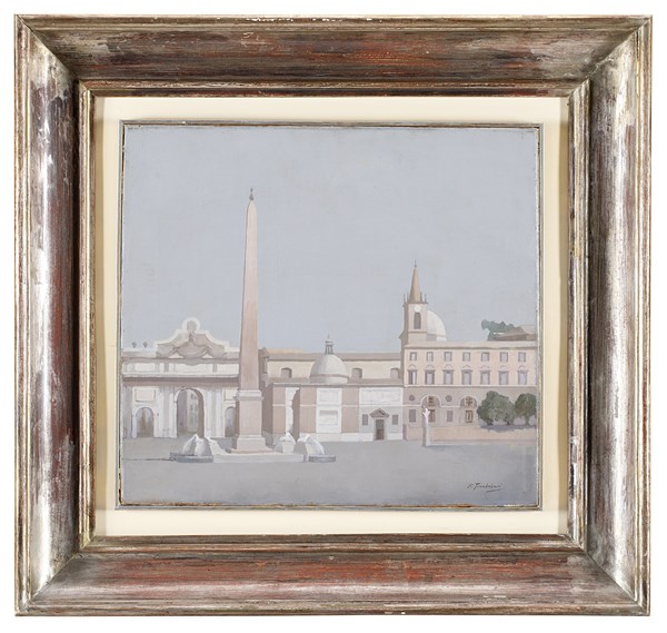 "Porta del Popolo. Rome" oil on canvas (cm 41x45) Signed on bottom right. In frame Exposure: