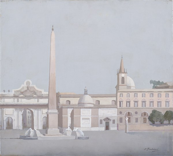 Francesco Trombadori "Porta del Popolo, Roma" olio su tela (cm 41x45) Firmato in