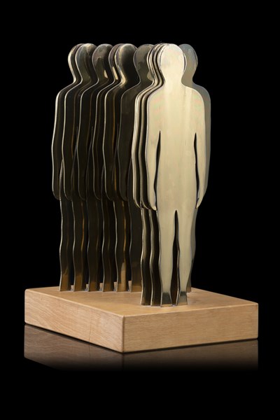 Mario Ceroli "Senza titolo" scultura in bronzo su base in legno. Firmata e numer