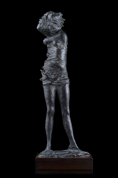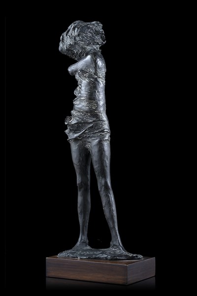 "La modella" scultura in bronzo (h cm 40) poggiante su base in legno. Firmata e datata '78. Multiplo numerato es. 17/30