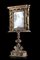 Specchiera da tavolo in legno intagliato e dorato. Parte superiore a edicola, s