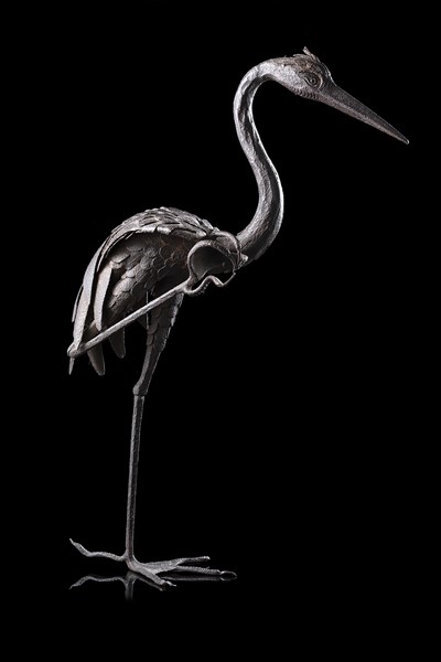 Antica scultura in ferro battuto raffigurante cicogna (h. cm 45) (difetti)