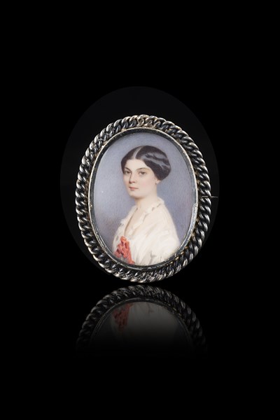 Scuola europea, secolo XIX "Ritratto di giovane donna con camicia bianca" minia