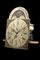 Mostra argentata con angolari applicati. Quadrante a cifre romane per le ore e arabe per i minuti.