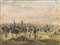Raro mobile "Zimmer Reise", Austria, prima metà sec. XIX, in radica di noce con parti ebanizzate, parte superiore modellata a tempietto con due finestrelle per visionare le immagini, parte inferiore con due fintii sportelli con formelle cuspidate inquadrate tra colonne, base rettilinea, cm 99x63x156, completo di otto incisioni acquerellate, alcune danneggiate