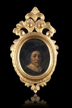 Scuola del secolo XVII "Ritratto di gentiluomo" miniatura ovale su rame (cm 8x7) In cornice dorata del secolo XIX (restauri)
