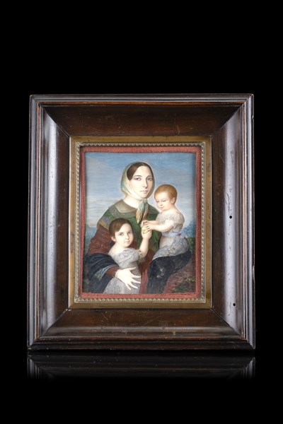 A 19th century Italian School "Family portrait" rectangular miniature on ivory (11x9 cm) In frame (defects and restorations)