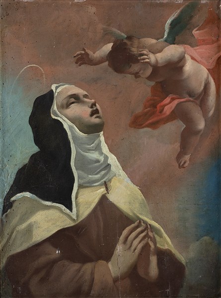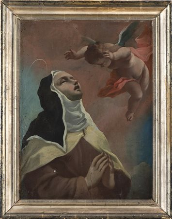 Scuola lombarda del secolo XVIII Estasi di santa Chiara d'Assisi Olio su tavol