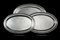 Gruppo di tre pesciere in argento, bordo cordonato. Titolo 800 (l. max cm 54,5)