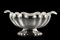Centrotavola biansato in argento con interno martellato, corpo costolato e bord