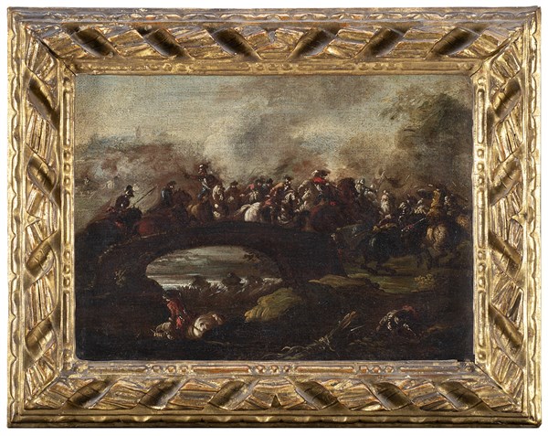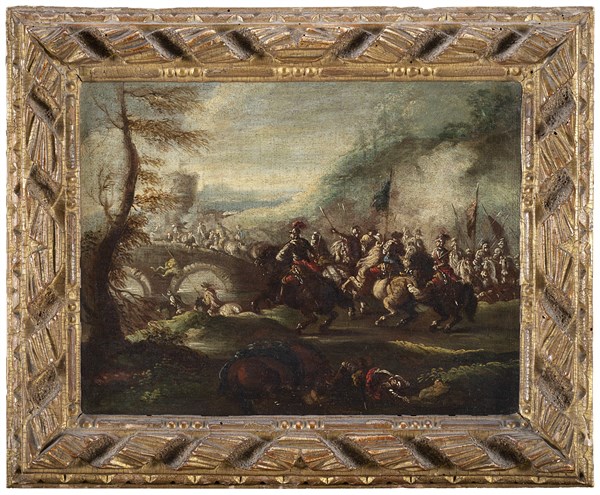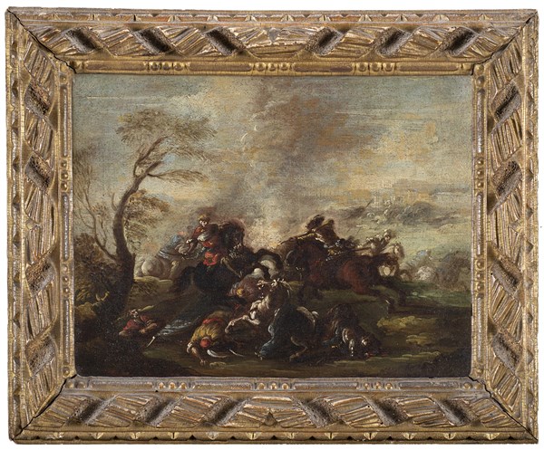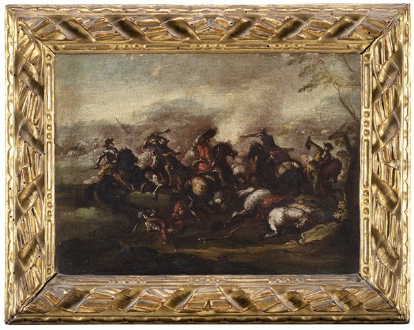 Scuola lombardo-veneta del secolo XVIII Scene di battaglia Quattro dipinti ad