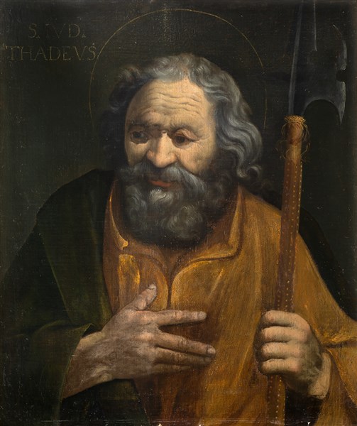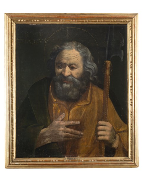 Scuola lombarda del secolo XVII San Mattia; San Taddeo Coppia di dipinti ad ol