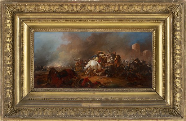 Scuola dell'Italia settentrionale, secolo XVIII Scena di battaglia Olio su tav