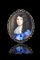 Maestro del secolo XVIII "Ritratto di gentiluomo con manto azzurro" miniatura ovale (cm 8x6) In cornice in argento e oro 18K decorata a fiocchi, pietre incolori e diamanti cabochon
