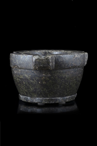 Antico mortaio polilobato in marmo verde (cm 21,5x12x6x18) (difetti)