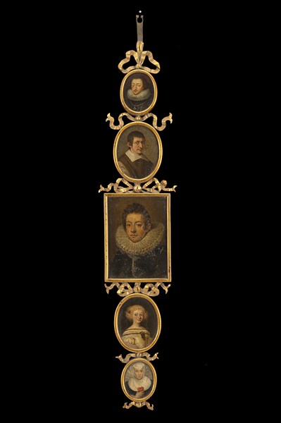 Lotto composto da cinque miniature montate in un'unica cornice: Scuola del nor